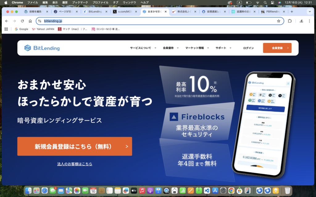Bit Lendingは、持っている暗号資産(仮想通貨)を貸し出して、その貸し出した利息がもらえるサービス業者になります。